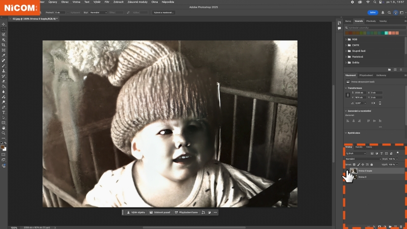 Přepínám ve vrstvách si můžete zobrazit originální a upravenou podobu fotografie.