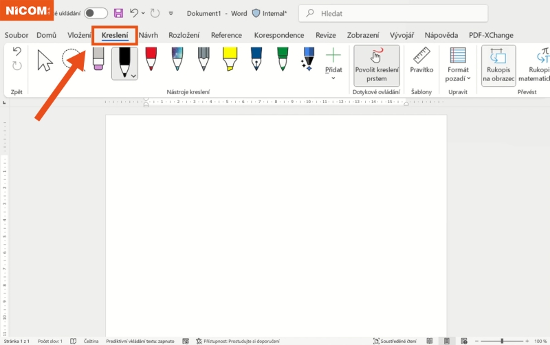 Přepněte se z karty Domů do karty Kreslení.